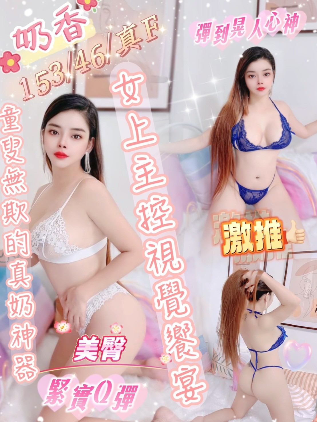 甜蜜共浴 舌吻(視衛生) 無套吹 小親親 品鮑 舔蛋/奶炮 胸推 按摩 可配合絲襪or變裝(需自備) 可配合角色扮演(需自備)