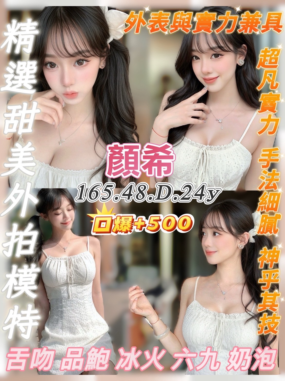 韓系最強小三,無辜深萌大眼、迷人魅力氣息、舉手投足充滿誘人費洛蒙,每次開班預約滿滿,外表第一、服務第一,來過都說歐一夕,此妹檔期有限敬請把握啊啊啊啊!