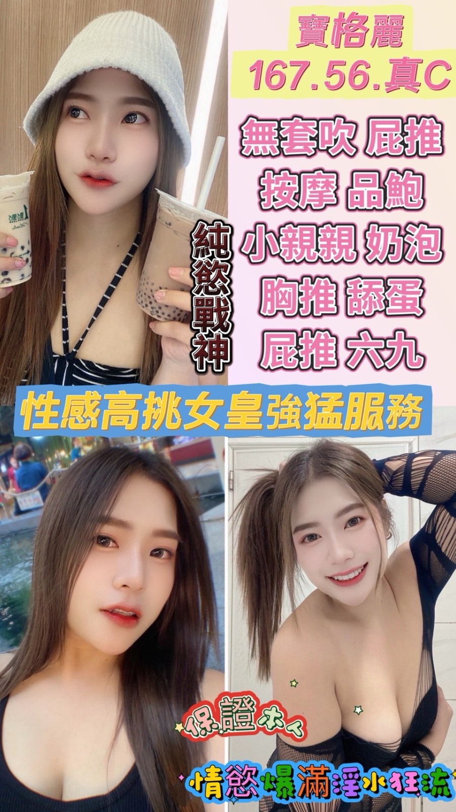 無套吹/共浴殘廢澡/親密KISS(視個人衛生和妹妹現場感覺.自行開發)/六九/品鮑/按摩/奶炮/胸推/屁推/足交/入珠/艷舞/深喉嚨/舔蛋
